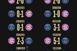 拜仁社媒晒对阵巴黎历史战绩:8胜6负占据优势,近4次交手皆取胜
