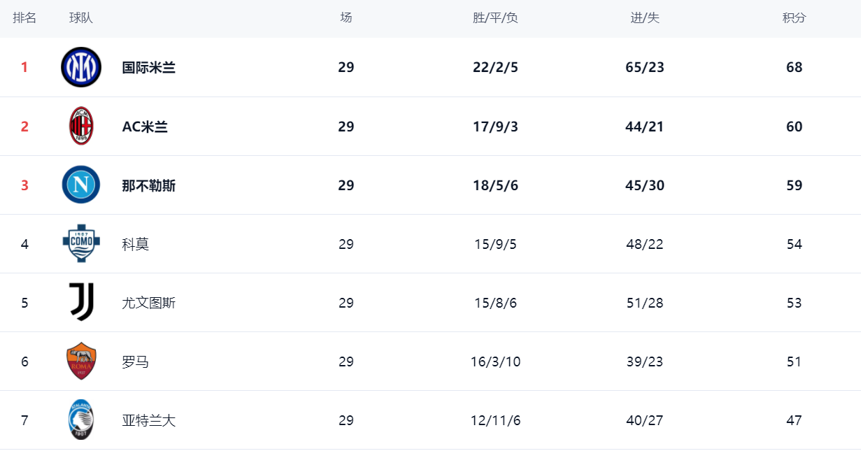 科莫赢下这场比赛,意味着在联赛取得4连胜。法布雷加斯真是神了,率领科莫高歌猛进。不知不觉科莫已经杀入了前4,改变了争四格局。科莫只比身前的那不勒斯少5分。53分的尤文图斯则被挤到了第5名的位置。至于罗马,连续3轮不胜,丢掉了太多分数,排名已经掉到第6,争四形势不容乐观。