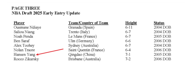 北京时间6月18日,NBA官宣今年最终提前参加选秀球员名单,最终本届提前参选球员剩余46人,其中包括32名来自NCAA及其他联盟的球员,以及14名国际球员,而中国19岁新星杨瀚森就在14名国际球员之列,至于林葳将在今年12月年满22周岁,因而达到自动参选年龄不算提前参选人员。
