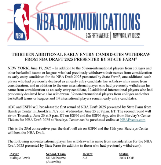 至于林葳目前21周岁,但他在今年12月就将年满22周岁,因此已具备2025年NBA选秀资格,无需额外申请,也就不算是提前参选球员,而林葳被选中的可能性不大,外界并不太看好林葳的选秀前景。